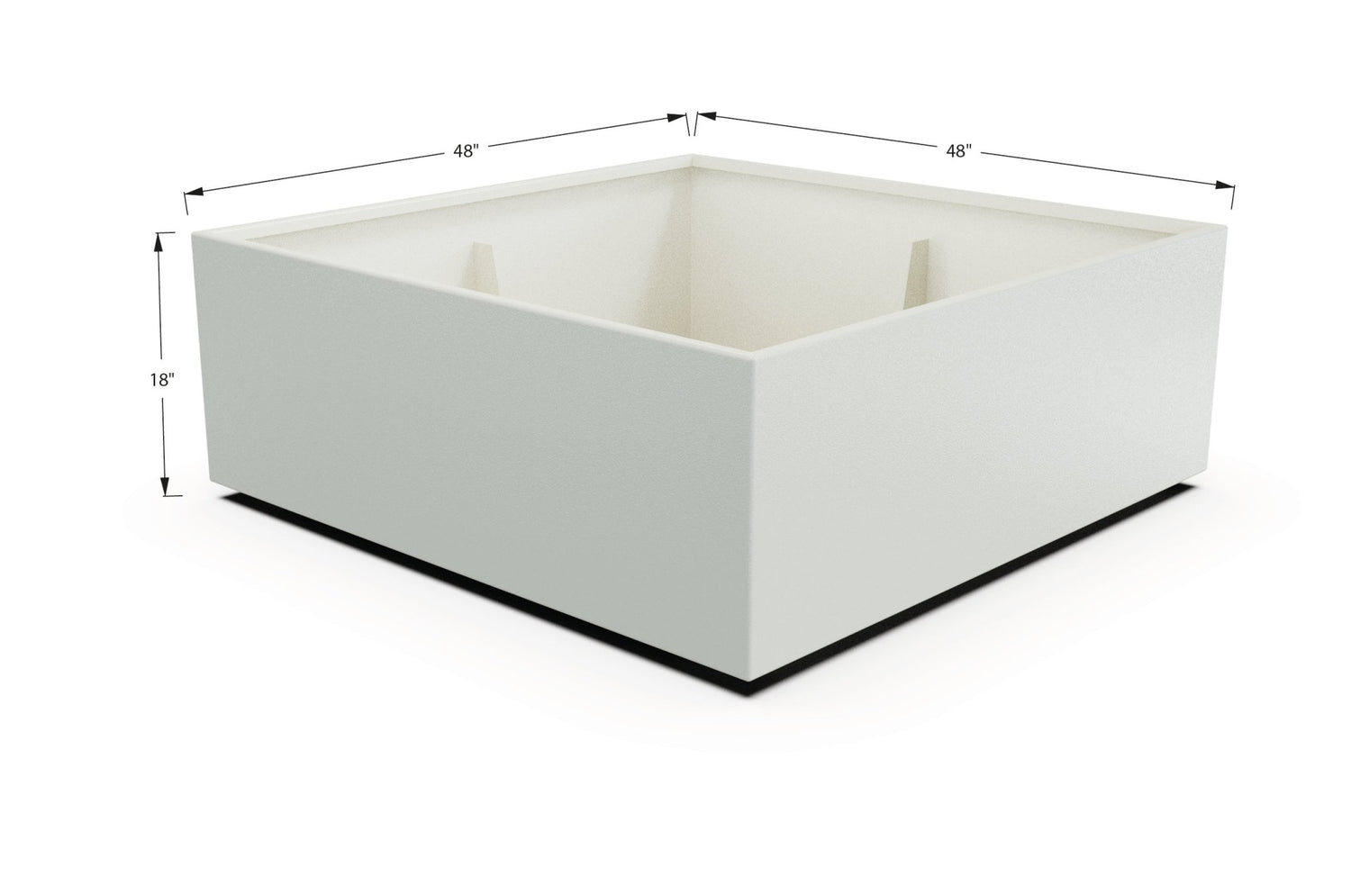 With a one-inch base, our planter pot comes in heights ranging from 11 inches to 23 inches, for a total of 12 to 24 inches. Choose from assorted sizes in length and width, from as small as 12×12 inches to as large as 48×48 inches. Optional drainage holes and multiple color options allow you to customize our square planter to your specifications.